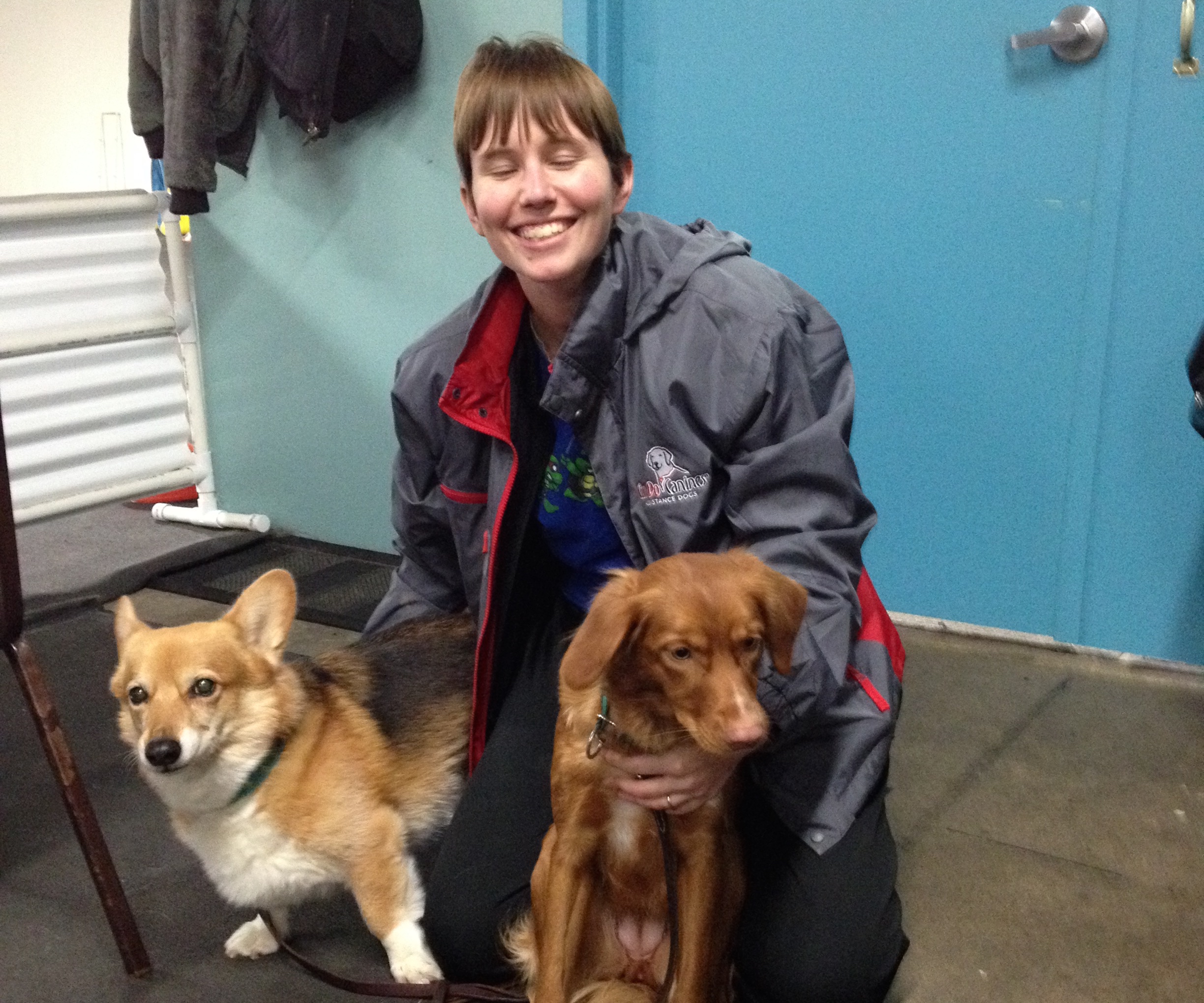 Laura currently has three dogs in her family. Lance, a corgi with UDX title, Utility Dog Excellent, and is half-way to completing OTCH – Obedience Trial Championship. Then there’s Vito, a Nova Scotia Duck Tolling Retriever with a Master level title in agility and a Utility title in obedience. Her puppy, Zumi, another N.S.D. Tolling Retriever, is working on foundations for competitive obedience, agility, and disc dog.